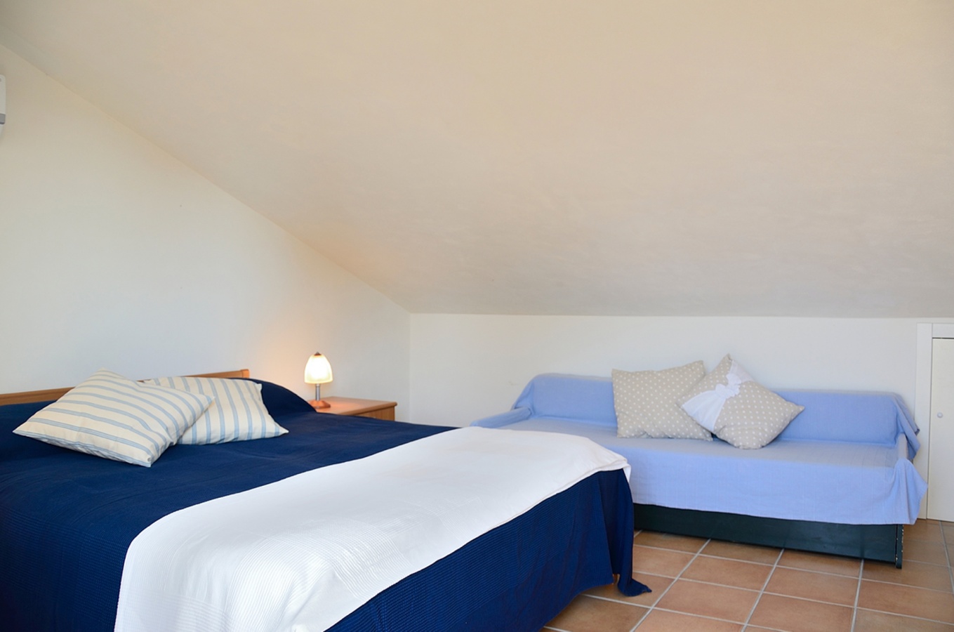 tramite scala esterna si accede al primo piano, dove si trova una camera matrimoniale, bagno e terrazzo vista mare.