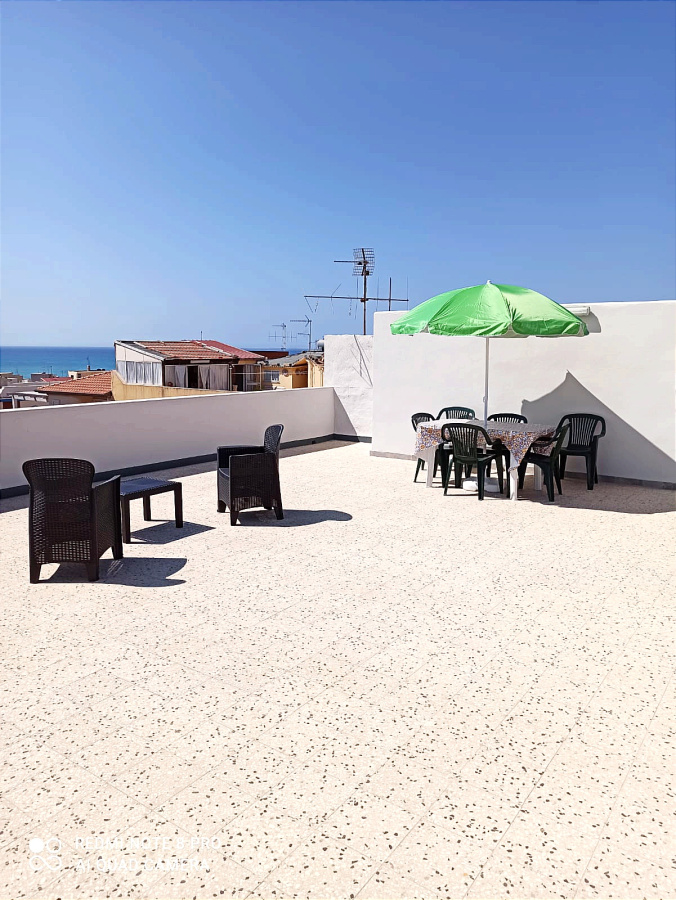 l'appartamento dispone inoltre di un terrazzo privato di 90 metri quadri, con vista mare e dotato di barbecue, tavolo e sedie.