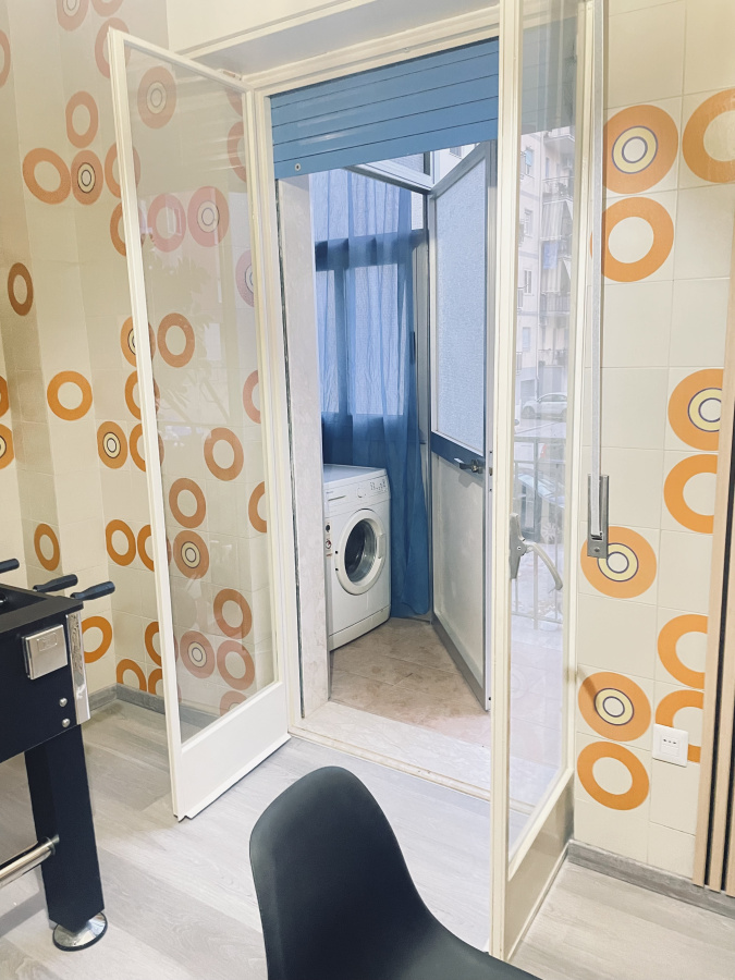 la cucina abitabile è completamente attrezzata con lavastoviglie, microonde, macchinetta del caffè, tostapane, cappuccinatore e bollitore. È presente anche lavatrice e spazio per stendere all’aperto.
