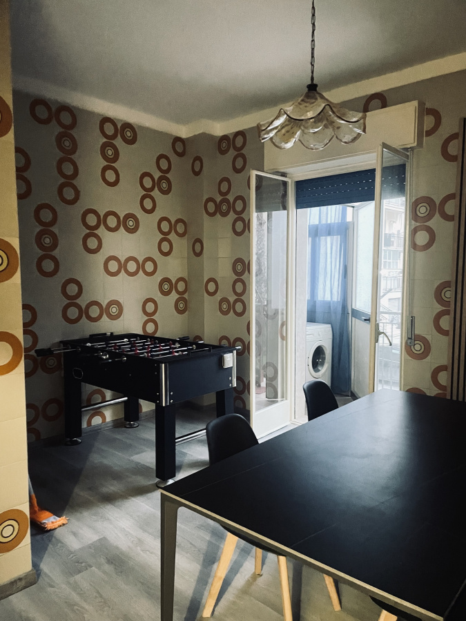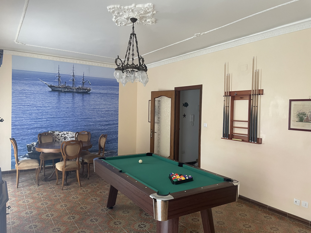 l’appartamento può ospitare fino a 6 persone e offre due camere matrimoniali, un bagno, un ampio salone con divano letto, biliardo e calciobalilla, perfetto per trascorrere serate divertenti in famiglia o tra amici.