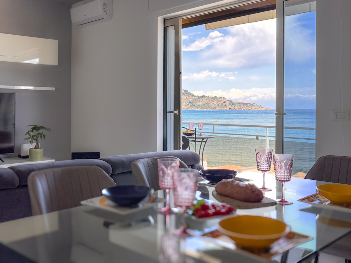 Splendido appartamento fronte mare, ci troviamo sul lungomare di giardini naxos. Offre tutti i servizi per un soggiorno rilassante. E' composto da: