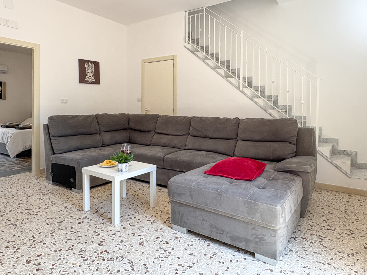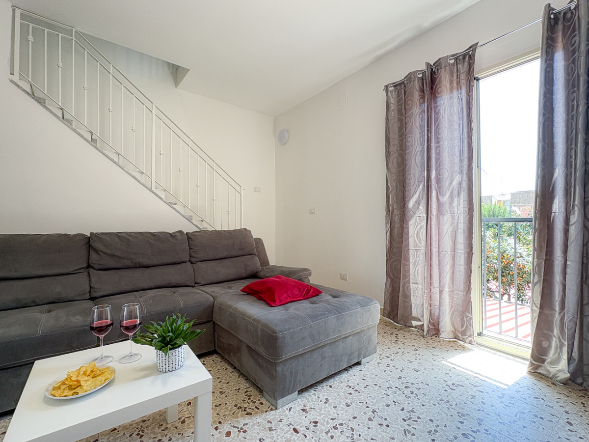 A casa di laura si trova in zona centrale, a pochi passi da piazza duomo. Si sviluppa su 2 piani ed é composta da 2 ampie camere da letto un confortevole bagno, da una zona giorno con tv e da una ben equipaggiata cucina . Balcone con ampia vista.