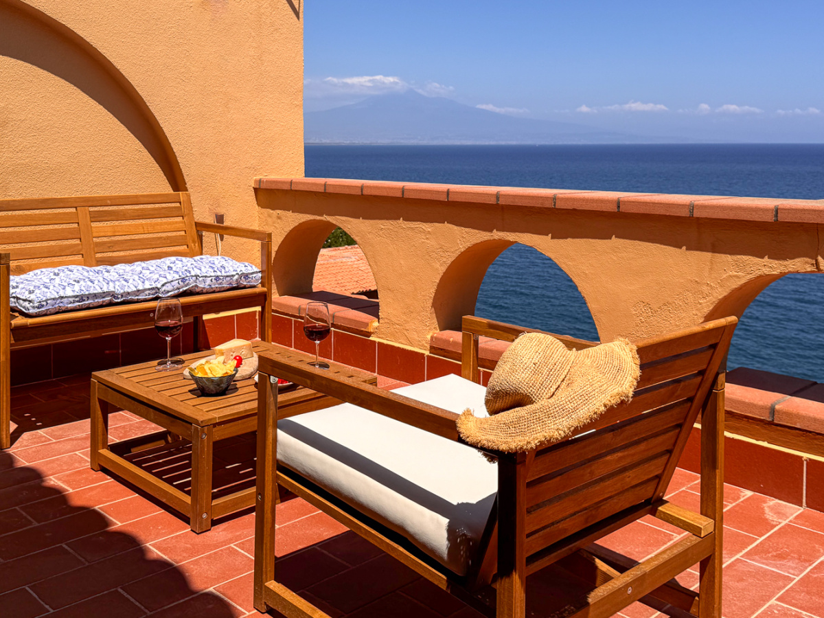 Il nostro accogliente appartamento gode di una splendida vista mare e vulcano sulla baia di costa saracena da dove ammirare splendidi tramonti.
