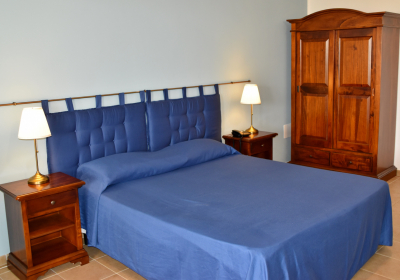 le camere, tutte nuove, ampie, spaziose e con comode terrazze attrezzate, sono dotate di tv lcd sat, climatizzatori, frigobar e wifi, sono circondate da ampi prati all'inglese e rinfrescate da meravigliosi carrubi e ulivi secolari.